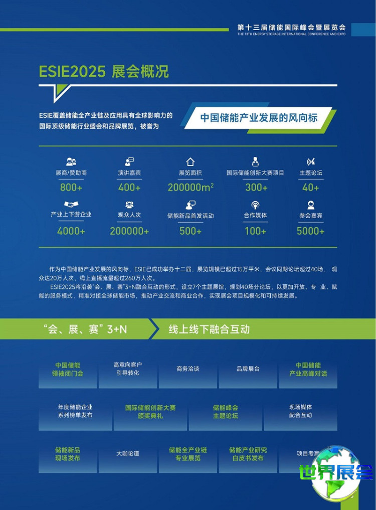 伴随产业的持续进步,本届ESIE展会规模创下新高,规划了12个主题展馆,展览面积接近150000平米,吸引了超过1000家储能领域领军企业参展,同期将举行40多场主题论坛与特色活动,200余个参赛项目集中展示,400多位行业权威专家进行精彩分享,预计将迎来20余万来自政府部门、监管机构、科研单位、电网企业、发电集团、系统集成商、储能技术供应商、储能配套设备商、能源运营商等领域的专业人士共聚一堂。共同聆听行业前沿动态,探讨产业发展趋势,是每年业界不容错过的储能产业盛会。