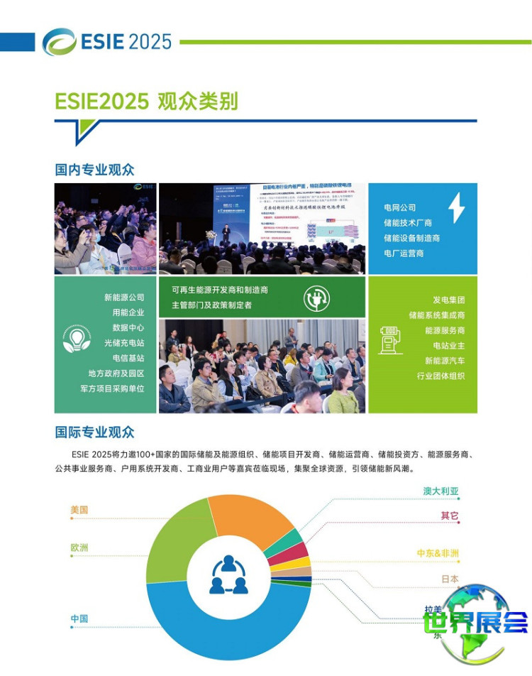 北京国际储能展览会-北京储能峰会(ESIE)将邀约来自美国、德国、澳大利亚、日本、加拿大、印度、欧洲等地区的上百位全球储能领域专家进行专题演讲,观众规模预计将突破万人,覆盖政府机构、监管单位、储能企业、科研院所、电网公司、发电集团、系统集成商、能源服务商等行业的精英人士。