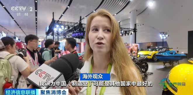 海外观众:我认为中国制造业可能是全球最好的之一,他们拥有许多产品,比如机器人、摩托车、汽车。看看这届消博会规模如此之大,展品如此丰富,有这么多机器人,还有机器狗,看起来确实很棒。