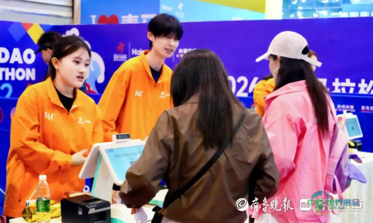 青马对跑友太贴心!海尔青岛马拉松博览会开幕选手开心领取参赛物资