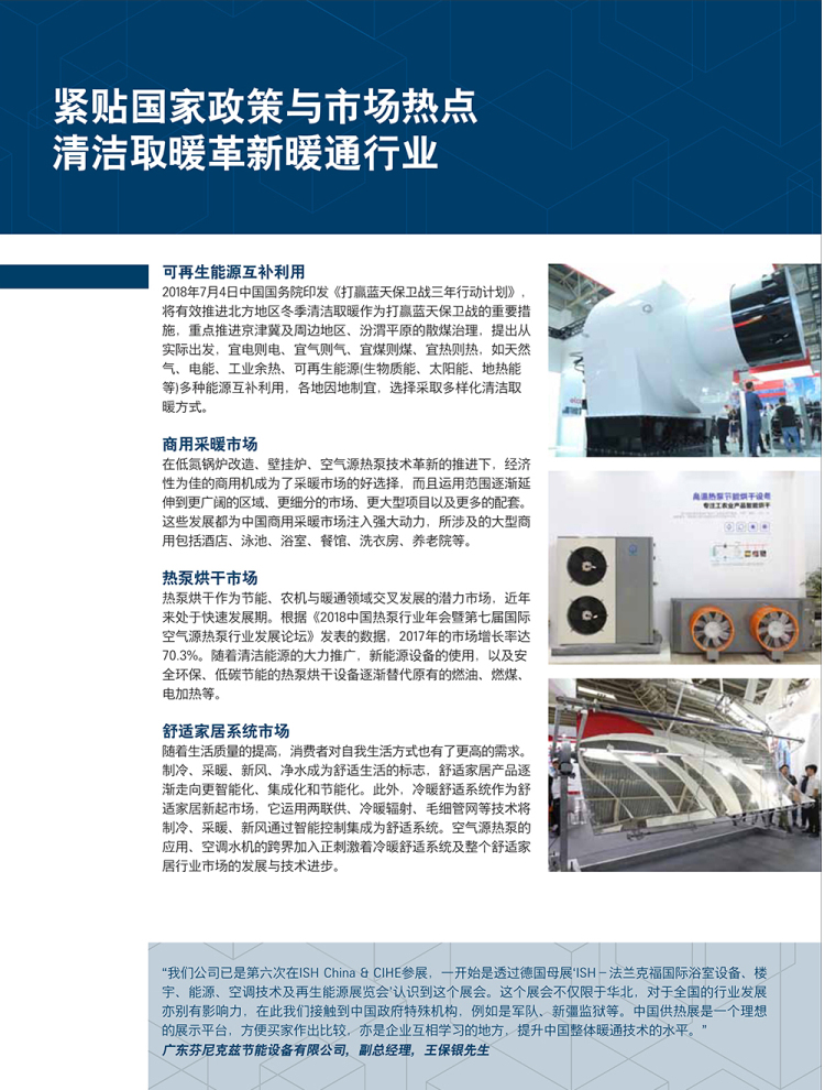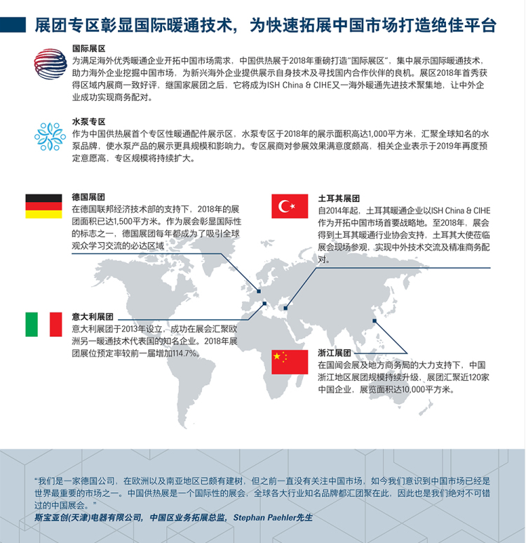 中国供热展-北京暖通卫浴展(ISH China & CIHE)展示了锅炉、壁挂锅炉、地板供暖、暖通、空调、环卫、家居舒适系统交易会。汇集全球暖通和管道行业的领先品牌方面,它有着卓越的业绩,打造中国舒适家居新生活。符合国家绿色能源政策,为暖通空调制造商和经销商搭建专业平台。