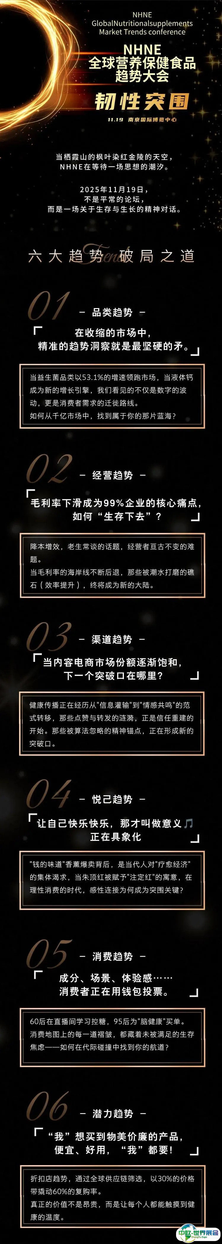11月19-21日南京国际博览中心,带上你的产品清单与市场雄心,来NHNE中国国际健康营养博览会,共启健康营养行业的“年终翻盘局”!