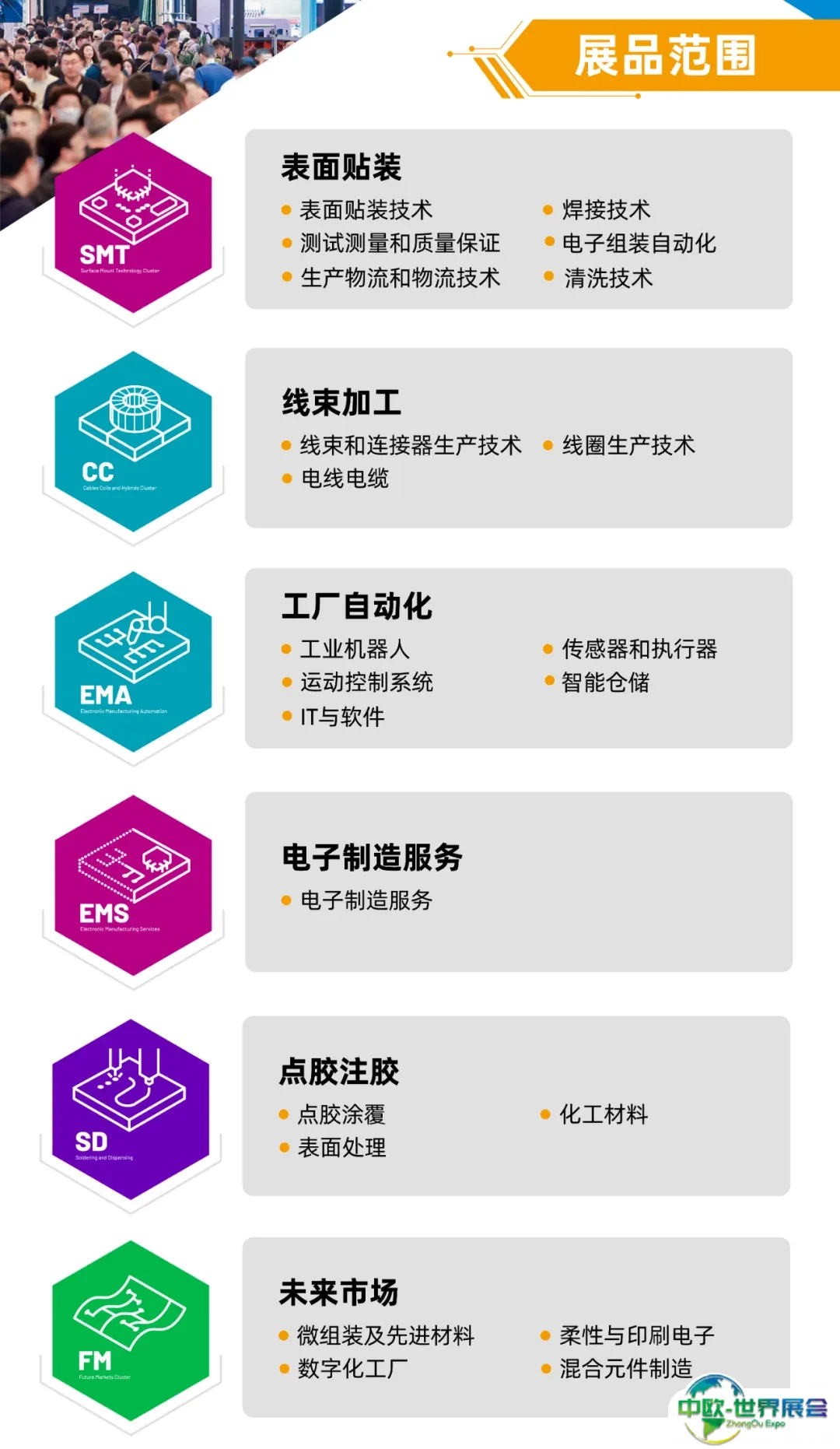 慕尼黑上海电子生产设备展将继续携手业内优质的微组装及半导体设备厂商,推出特色展区-微组装科技园。聚焦Micro LED/Mini LED显示芯片、手机微型元器件、MEMS器件、射频器件、微波器件和混合电路等领域,探索和拓展电子微组装技术的应用领域,以推动电子产业的持续创新和发展。