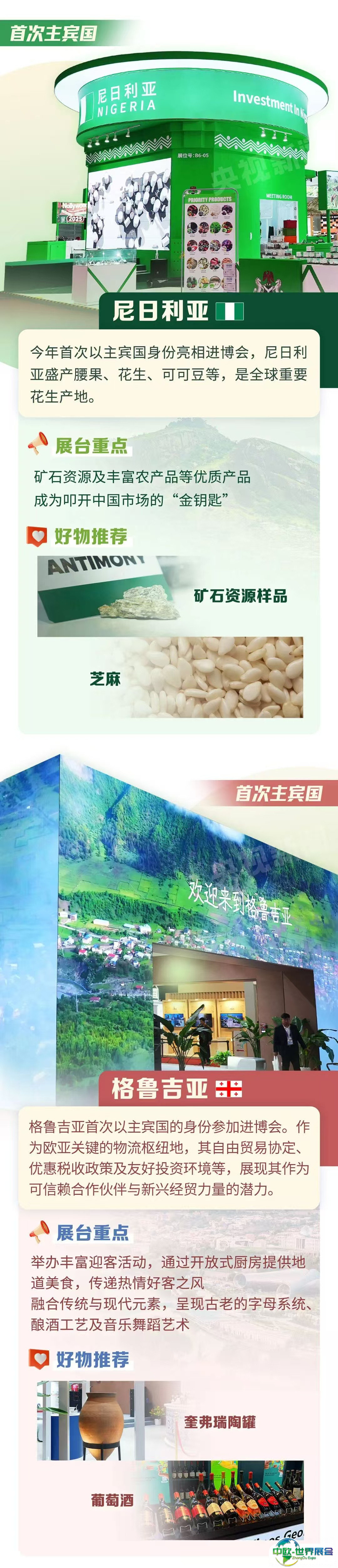 本届进博会上,阿联酋、尼日利亚、格鲁吉亚、瑞典、哥伦比亚迎来“主宾首秀”,泰国第二次以主宾国身份参展。新老朋友齐聚,这些国家带来哪些精彩好物?