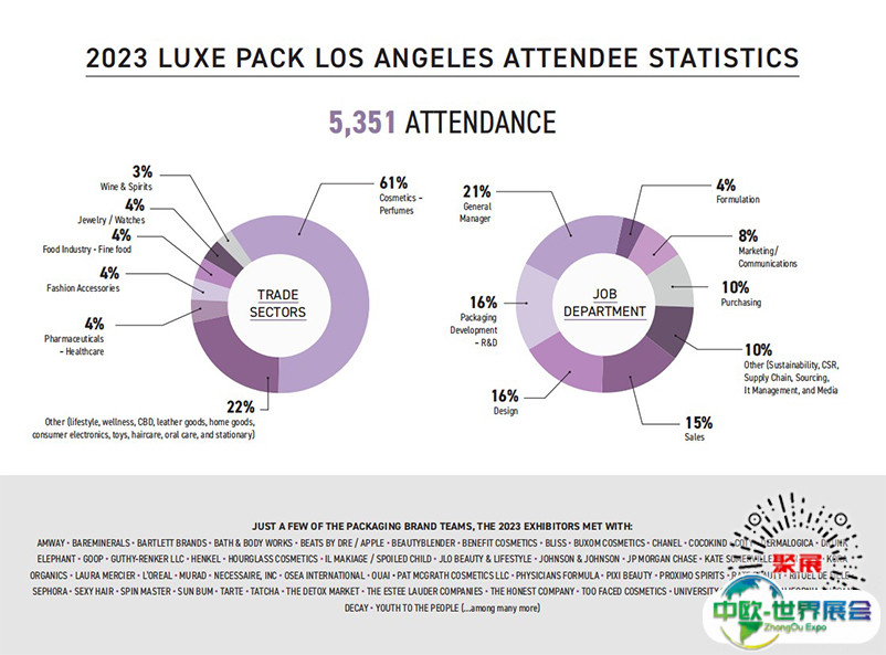 美国洛杉矶奢侈品包装展Luxepack Los Angeles上届展会总面积23000平方米,参展企业415家均来自中国、中国香港、迪拜、墨西哥、德国、英国等,参展人数达27900人。此外,该活动还将为展厅增加一个为期两天的会议计划,旨在提供最好的行业讨论,以解决行业最大的痛点和即将到来的趋势。