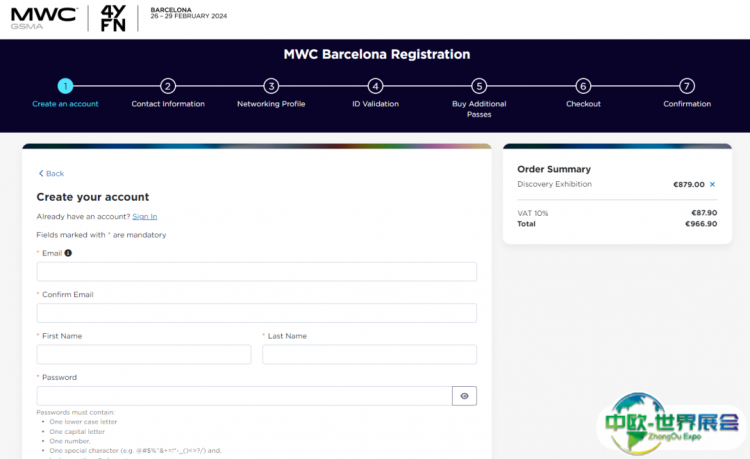 1. 访问西班牙巴塞罗那世界移动通信大会官方网站或中欧世界展会网展会页面。